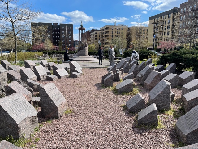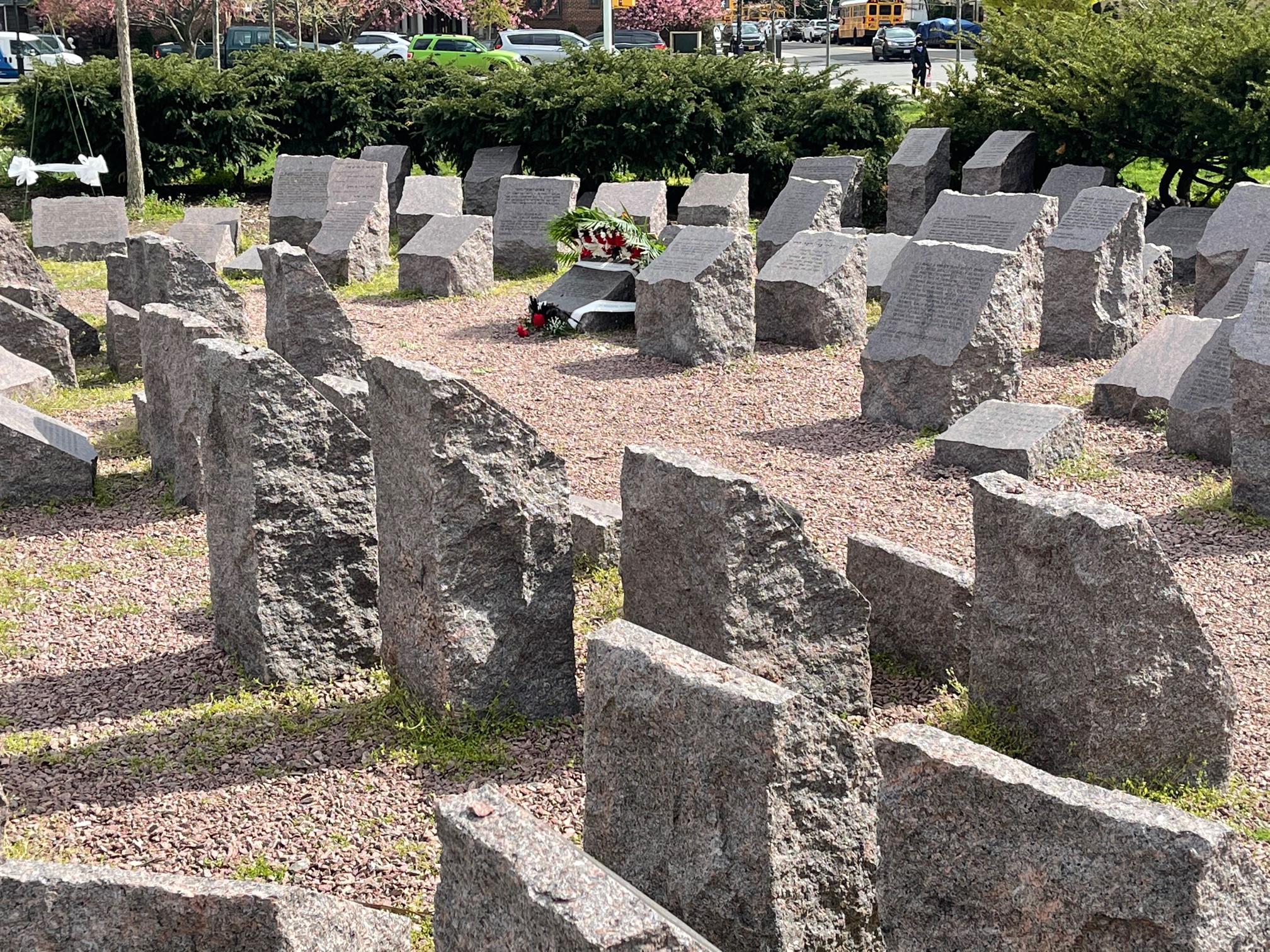 New York’s Holocaust Memorial Park in Brooklyn. Flowers were